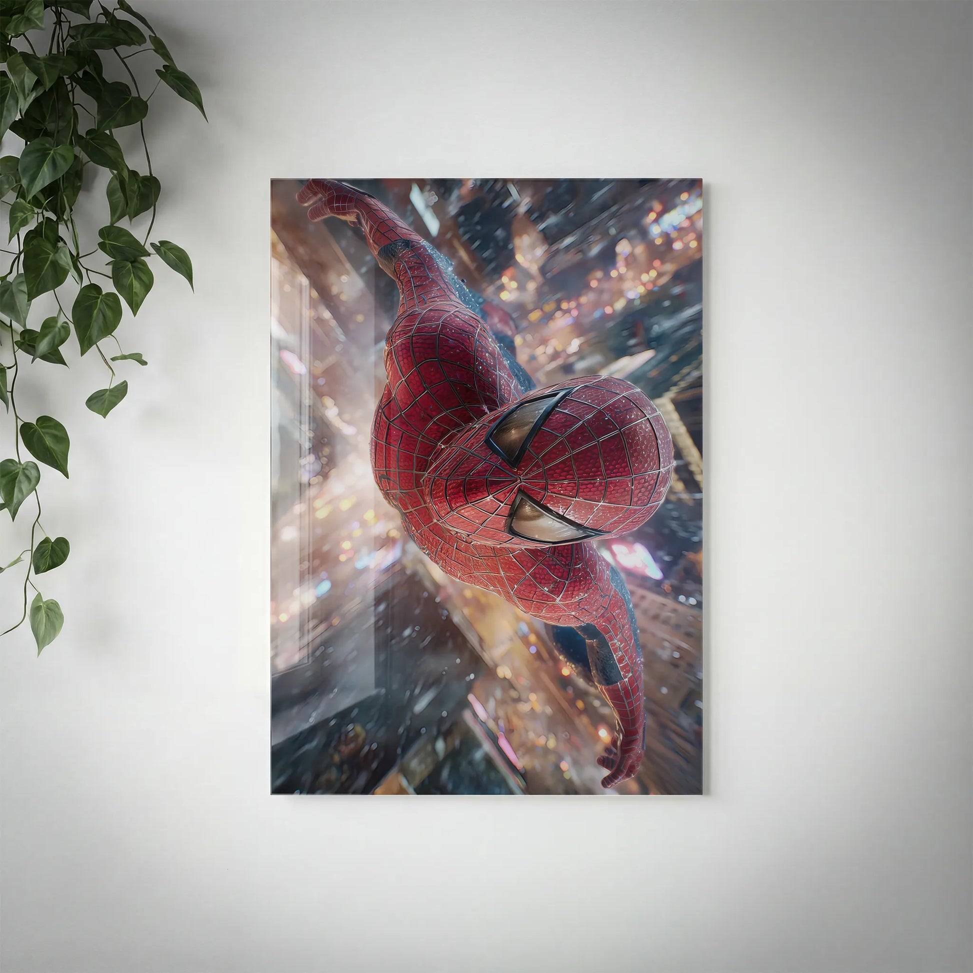 Miles y Peter en una sola composición. El equilibrio perfecto entre el traje clásico y el estilo urbano de Miles. Mucho movimiento y color para romper la monotonía de cualquier pared blanca.