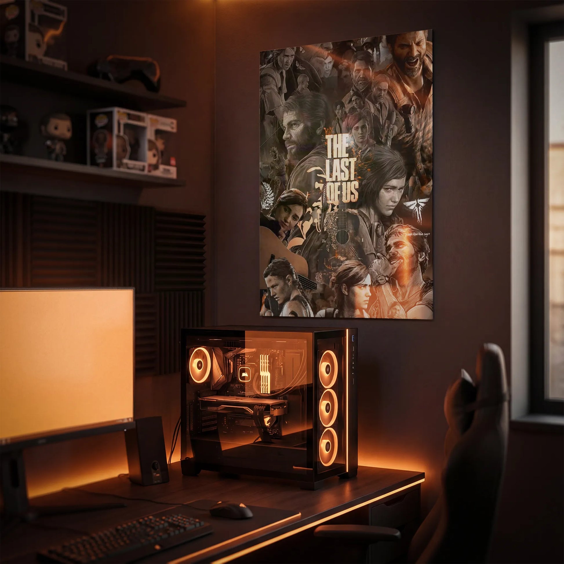 No es solo un cuadro, es la atmósfera del post-apocalipsis de Naughty Dog. Un arte enfocado en el detalle y la narrativa visual. Perfecto para quienes buscan una decoración con peso emocional y estilo "gritty".
